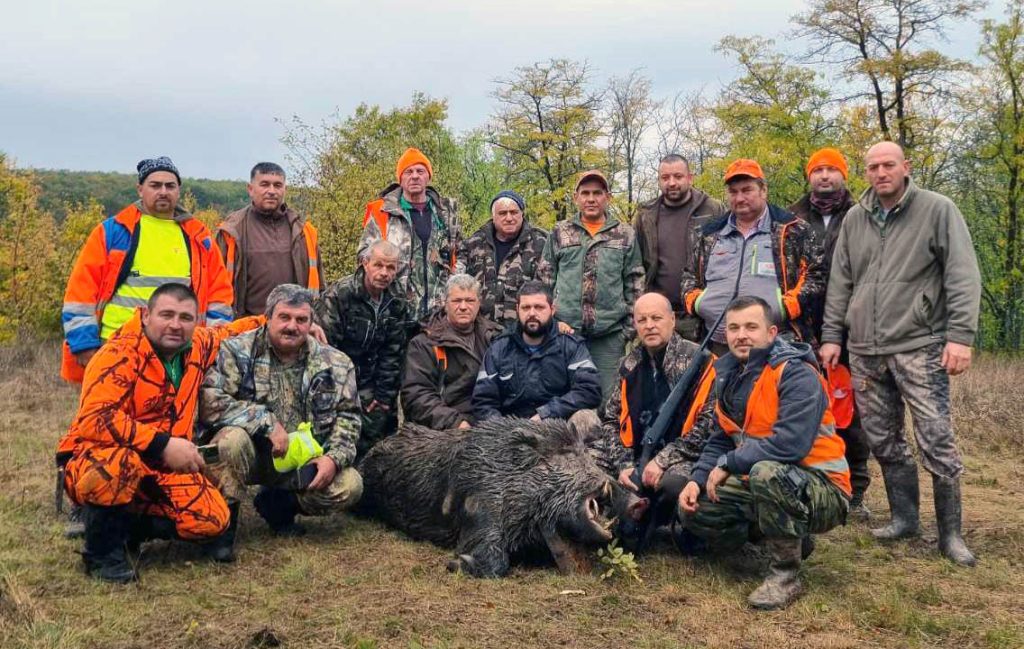 По време на груповия лов в съботния ден член на дружинката – Тихомир Атанасов с точен изстрел повали 250 килограмов глиган.