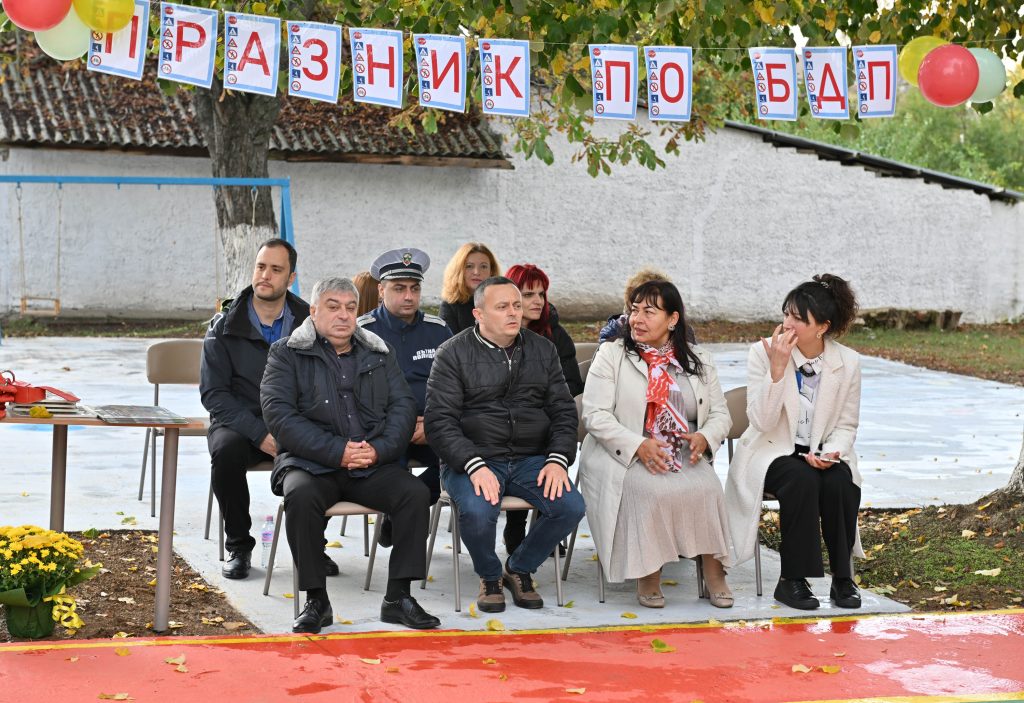На новооткритата площадка се проведе и празник по безопасност на движението с деца от четирите групи в градината.