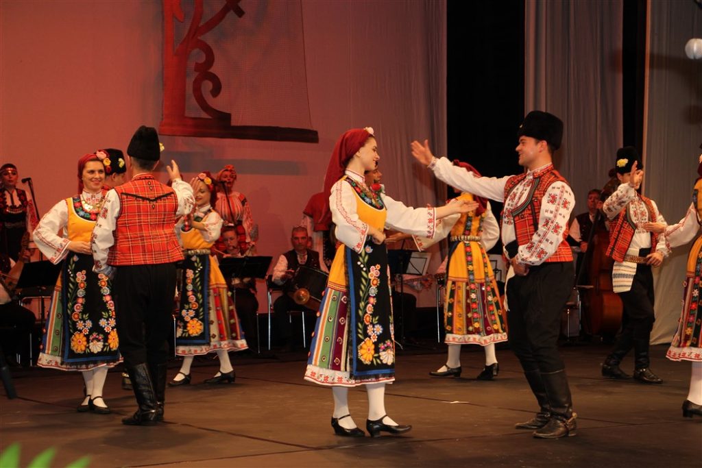 Многоцветен фолклорен букет от танци, песни, музика и багри поднесоха на изпълнилата залата на Общинския културен център публика артистите от Капанския ансамбъл и Националния фолклорен ансамбъл „Филип Кутев“.