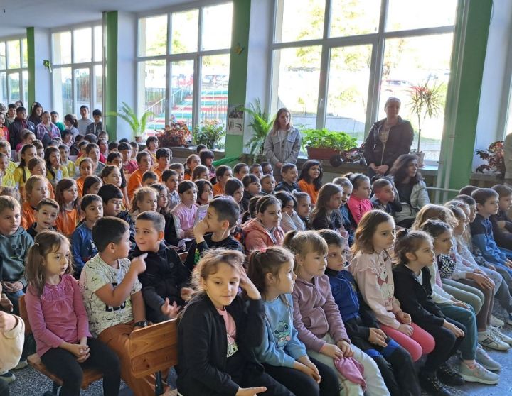 III А и IV А с г-жа Калинa Начева и г-жа Милена Стоянова поздравиха децата от ДГ „Славейче“ и ДГ „Лудогорче“ за Деня на народните будители и им подариха книжка, изработена от самите ученици.