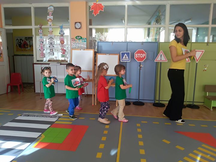 Представите за задължителните елементи като улица, тротоар, светофар, пешеходна пътека, регулировчик и др. децата назоваха убедително по време на откритата педагогическа ситуация, а по-големите деца майсторски се придвижиха с тротинетки, спазвайки дистанция и знаците на пътя. Малки и големи искрено се забавляваха и подкрепяха с ръкопляскане своите връстници преминали и изпълнили успешно предизвикателствата пред тях на пътя.