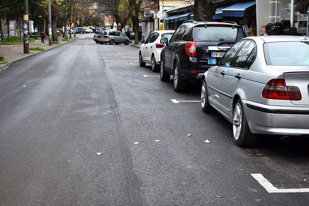 Към финала си е ремонтът на ул. „Марица“ в Разград. Работниците от „Пътно строителство“АД извършват довършителни дейности по тротоарите: пренареждане на плочки, оформяне около дърветата  и други, а работници от ОП“Ремонтстрой“ полагат маркировка върху новия асфалт.