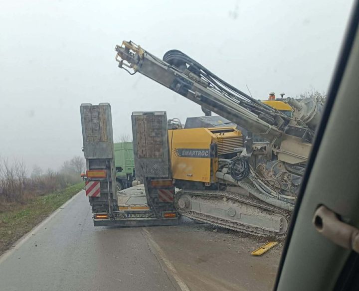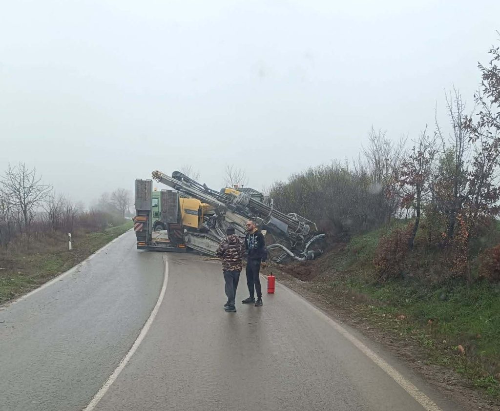 Днес около 11,00 ч. е получен сигнал за пътен инцидент с участието на камион, превозващ специализирана машина за сондиране.