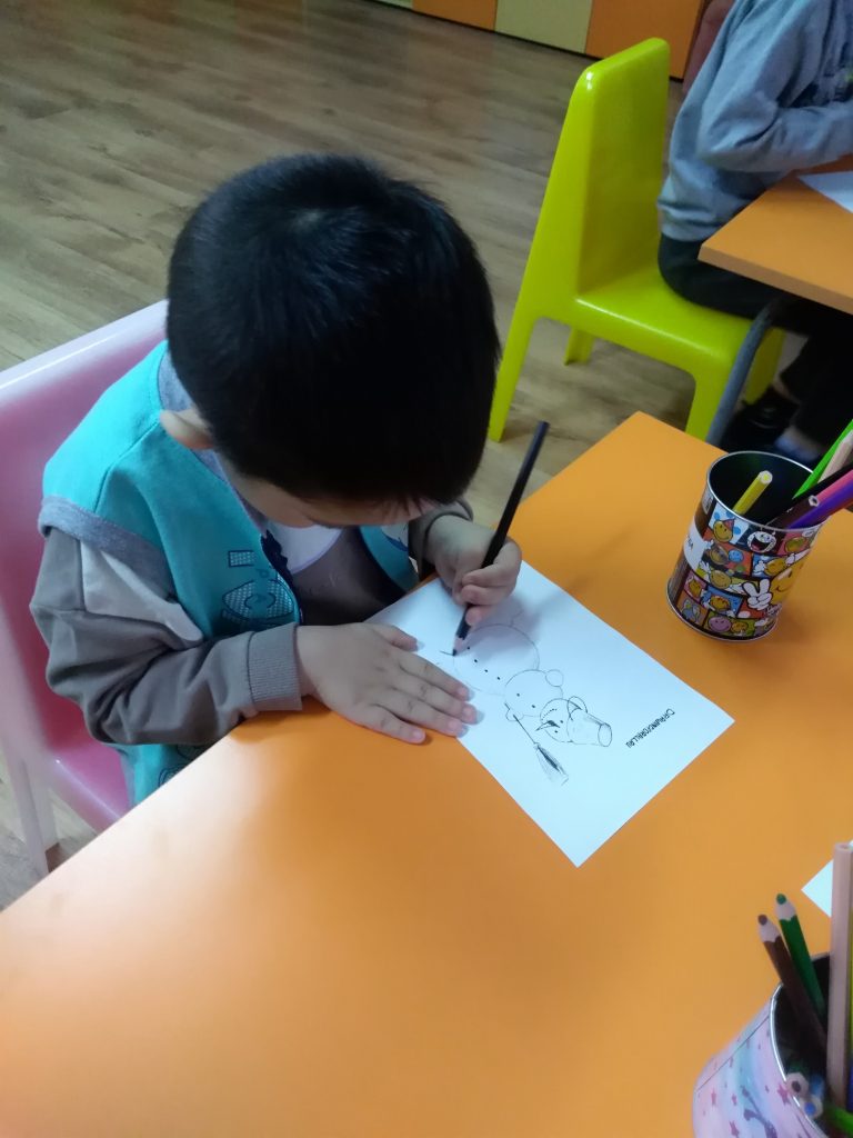 С децата рисува и секретарят по превенция, която често гостува в детското заведение с развлекателно-образователни моменти от превантивно-образователната програма „Превенция чрез позитивни начинания“.