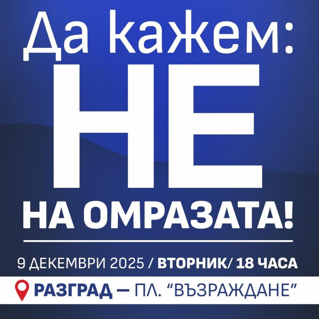 На площад „Възраждане“ ще се състои мирна проява под мотото „ДА на стабилността, НЕ на омразата!“, организирана от ДПС – Ново начало днес от 18,00 ч. Събитието е част от национална инициатива и е насочено срещу насаждането на омраза и дестабилизацията на страната в ключов момент за България.