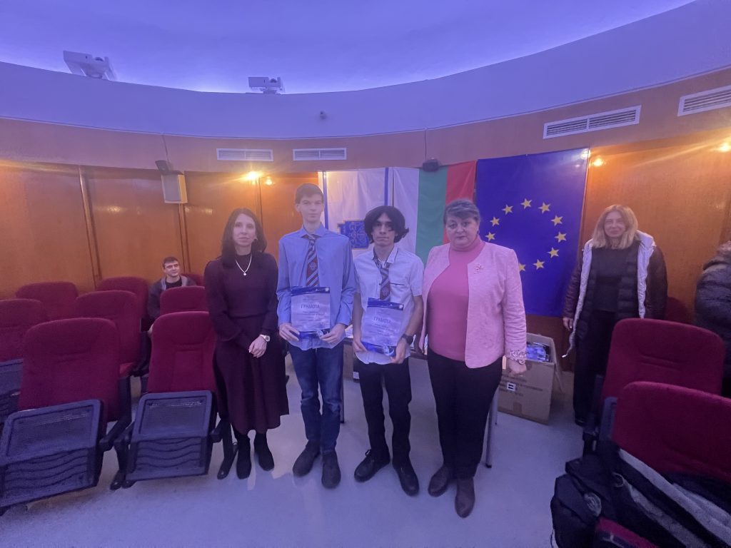 Нашите ученици Атанас Тодоров и Борис Димитров от 11г клас, спечелиха I място в категорията „Демонстрация на експеримент“ под ръководството на своя класен ръководител – инж. К. Радков.