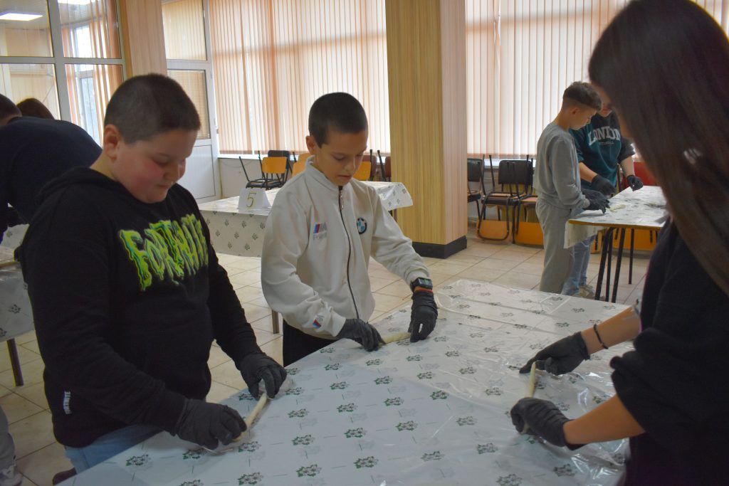 В стола на ОП“Столово хранене“ всяко от децата само разточи тесто и оформи геврече, което служителите на общинското предприятие изпекоха. Кулинарни умения на малчуганите от ОУ“Отец Паисий“, ОУ“Н.Й.Вапцаров“, ОУ“Васил Левски“, ОУ“Ив.С.Тургенев“ и СУ“Христо Ботев“ преподаваха техни връстници от клубовете към ЦПЛР Център за ученическо техническо и научно творчество. Материалите за гевречетата бяха осигурени от ОП“Столово хранене“.