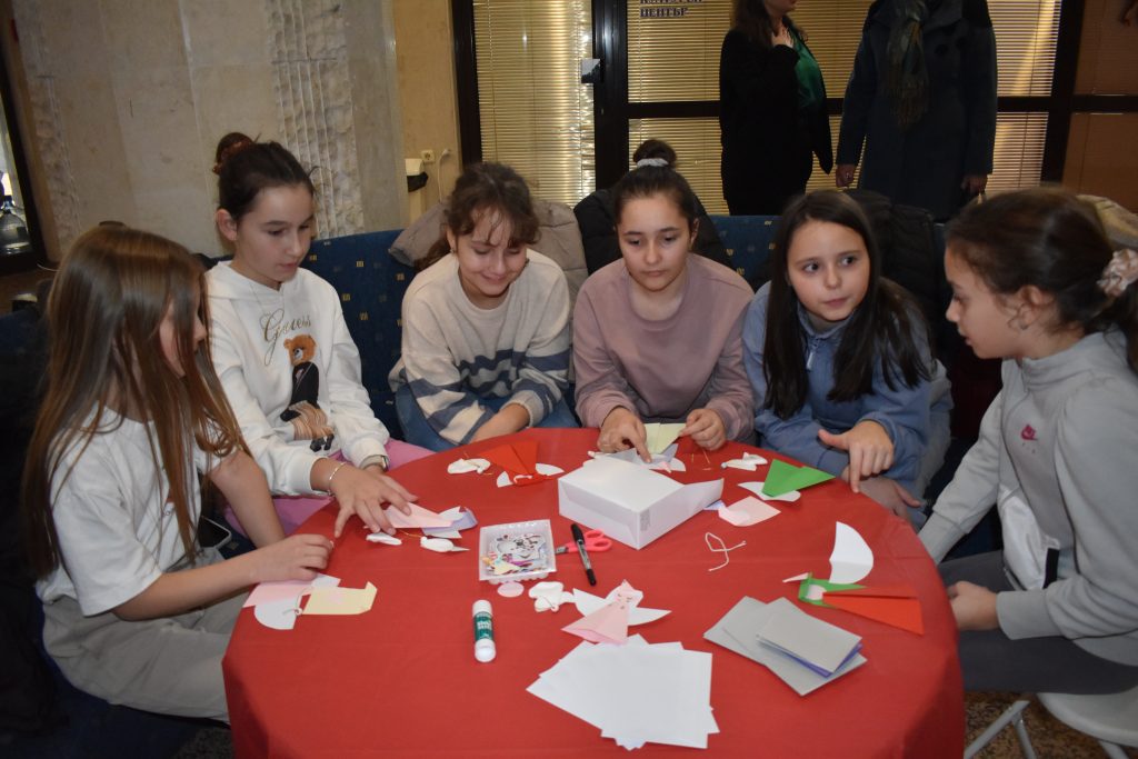 Ученици от ОУ“Васил Левски“, СУ“Христо Ботев“ и от Школа по английски език „Стъпка по стъпка“ в ЦПЛР Център за работа с деца се научиха как да изработят картички и украшения с форма на ангел. Техен ментор бе ръководителят на Школата по изобразително изкуство в ЦРД Цветомира Петрова. Помагаха й неколцина от нейните възпитаници в школата.