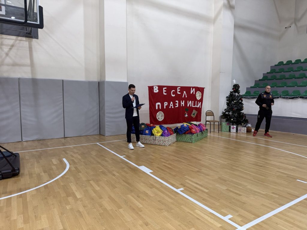 По време на тържеството младите баскетболисти участваха в демонстративни игри и забавни състезания, които предизвикаха интереса и аплодисментите на присъстващите. Празничното настроение беше допълнено от музика, коледна украса и много усмивки, а кулминацията настъпи с раздаването на подаръци от Дядо Коледа и общи снимки за спомен.