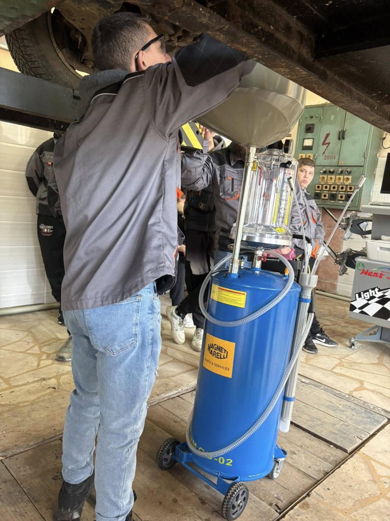 Учениците от 11А клас показаха развитието на въведената иновация. Тази година темата беше „Техническо обслужване на автомобил“. Гостите наблюдаваха смяна на масло и филтри, диагностика на автомобил, диагностика на акумулаторна батерия и демонстрация на работата на горивната система на бензинов двигател.